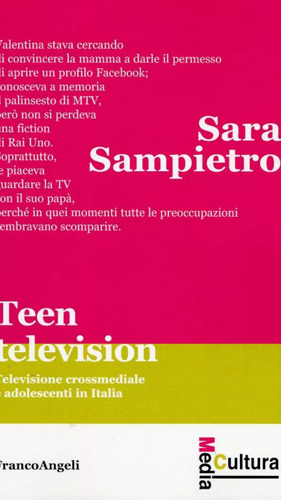Il volume si propone di comprendere in profondità i modi in cui una nuova generazione di spettatori - quella dei cosiddetti "nativi digitali" - fa proprie le risorse che l'attuale convergenza televisiva le mette a disposizione. Uno scenario che li vede continuamente passare dallo schermo della TV a quello del computer, tablet e smartphone. La ricerca presentata si è proposta quindi di rileggere l'esperienza televisiva dei ragazzi valorizzandone quanto più possibile la complessità, non limitandosi ad affrontare questioni legate a tecnologie e contenuti, ma ampliando lo spettro di indagine fino a comprendere il soggetto e il suo poliedrico vissuto quotidiano.